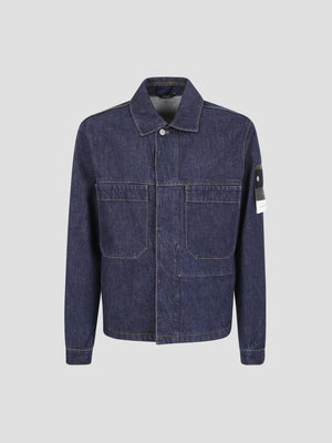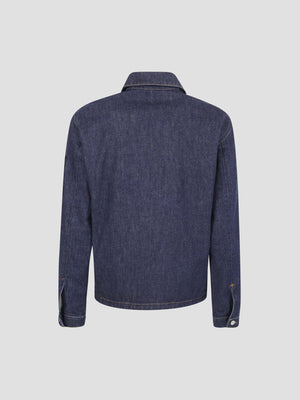 Cotton denim jacket in a 'Blue Rinse' finish. It features a biker-inspired silhouette.