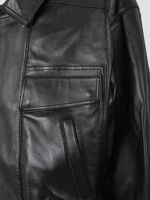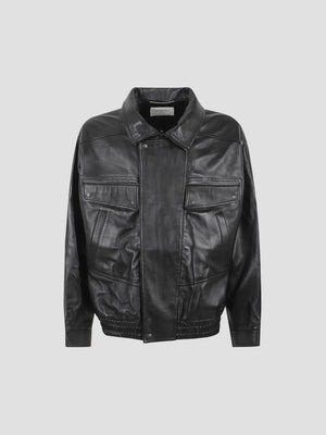 A timeless layer characterized by pointed collar, zip closure and flap with snap buttons, dropped shoulders, padded shoulders, buttoned cuffs, flap pockets on the flap, front patch pocket and gathered waist.