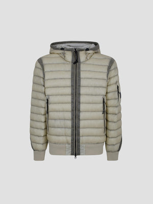 Regular-fit puffer made from technical micro-ripstop nylon. Using Direct Down Injection for lightweight warmth, it features a full-zip closure, adjustable hood, and elasticated cuffs. The design is finished with internal pockets and the iconic Lens detail on the sleeve.