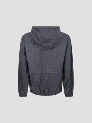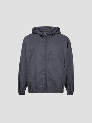 This nylon jacket showcases the House s signature monogram through a technical weave, adding a rich visual depth to a functional silhouette. This lightweight piece is designed for practicality, featuring a fixed drawstring hood and elasticated hems and cuffs for a secure, weatherproof fit.