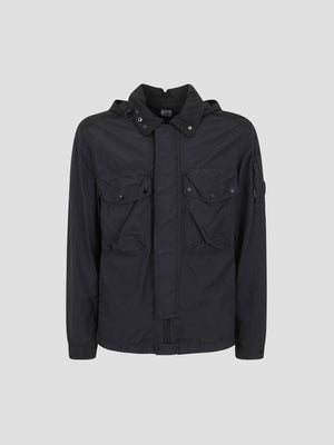 This hooded overshirt is crafted from technical fabric, it features the iconic Goggle lenses integrated into the hood. The design is finished with a full-zip closure, adjustable hood, and functional chest pockets.