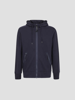 Hoodie crafted from midweight, brushed diagonal cotton fleece. It features the iconic adjustable goggle hood, a full-length zip, and secure zip pockets. Designed for a technical fit, it is finished with thumbhole cuffs for added coverage and a streamlined, tactical silhouette.