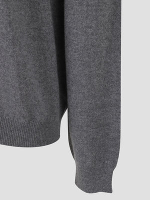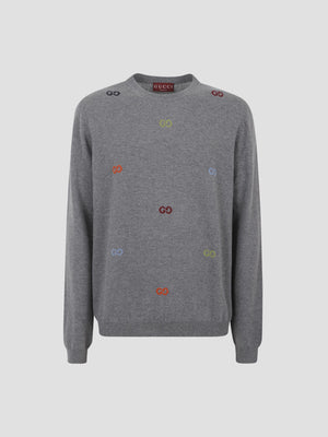 Grey and green tones spotlight delicate floral embroideries, embossed logos, and more craftsmanship details. Crafted from grey fine cashmere, this sweater is defined a multi-colored GG intarsia. Made from 100% cashmere.