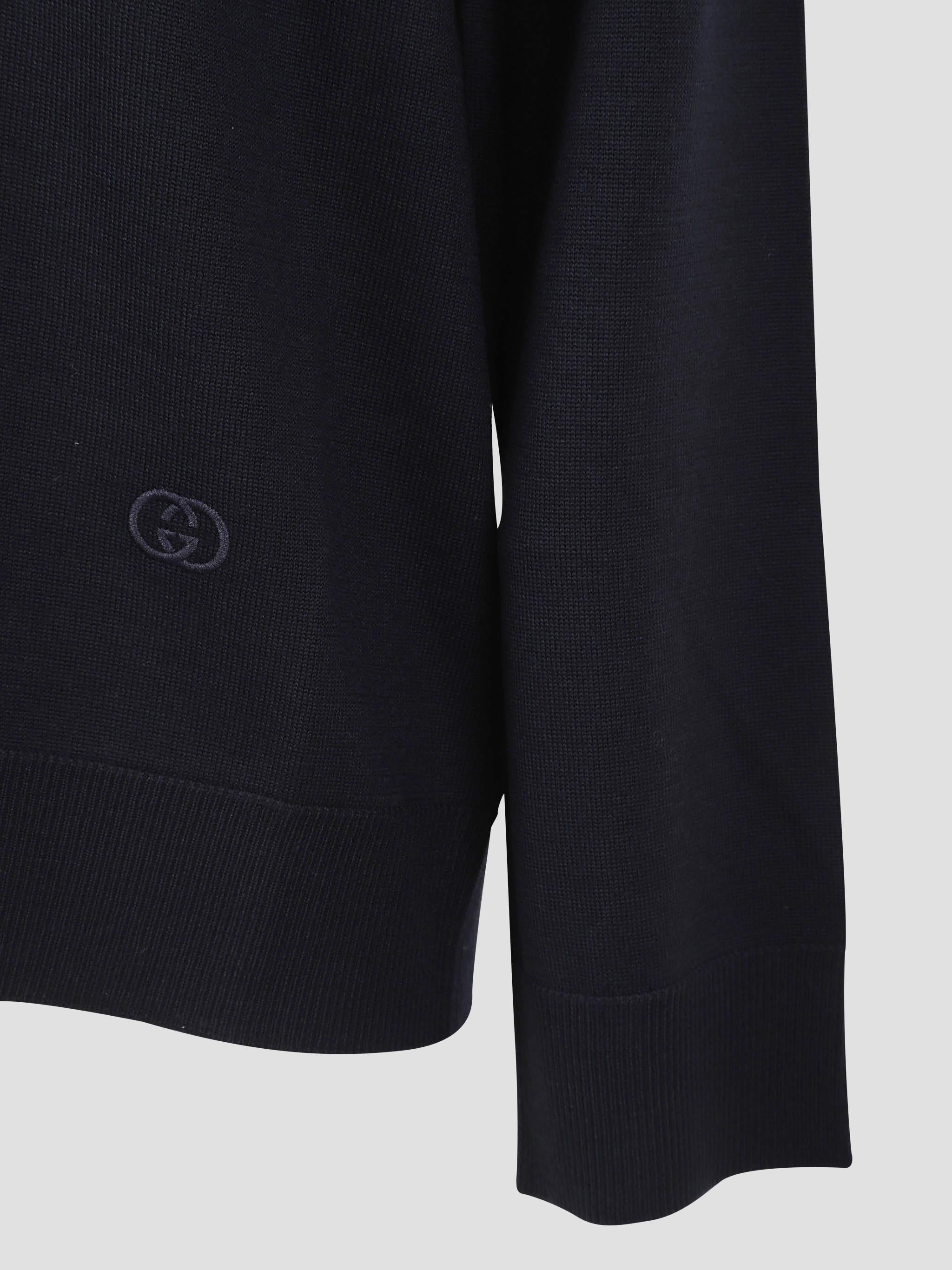 Tailored as a refined polo shirt with black extra fine wool, interlocking G embroidered detail, polo collar, long sleeves, and a rib trim. Made from 100% wool.