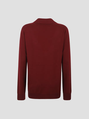 Tailored as a refined polo shirt with Gucci Rosso Ancora red extra fine wool, interlocking G embroidered detail, polo collar, long sleeves, and a rib trim. Made from 100% wool.