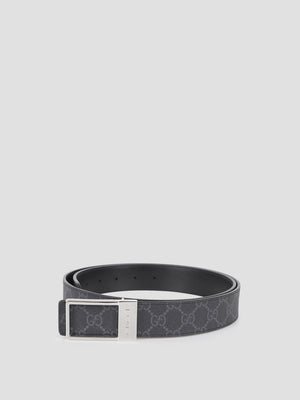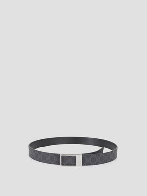 A timeless reversible belt with retangular buckle. Made from 60% polyurethane 20% polyester 20% cotton.