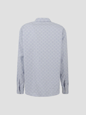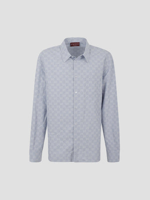 A timeless layer designed with light blue stripes and GG cotton print, point collar, front chest pocket, long sleeves and front buttons closure. This piece is made from 84% cotton and 16% se for a clean.