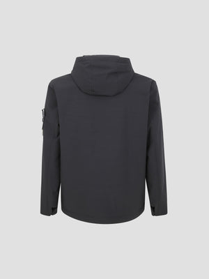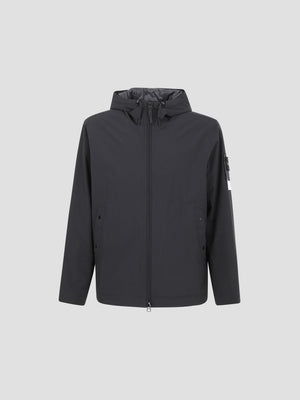 Padded jacket made from recycled stretch polyester. It features a windproof/waterproof membrane, PrimaLoft® Gold P.U.R.E™ insulation, and an anti-drop finish. Design highlights include a drawstring hood, concealed zip, and the signature sleeve badge.