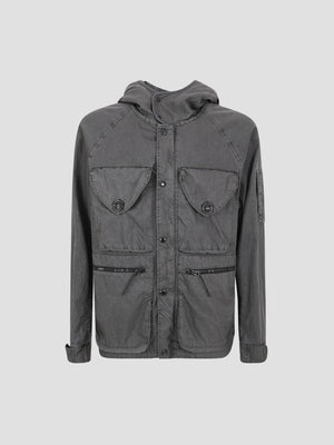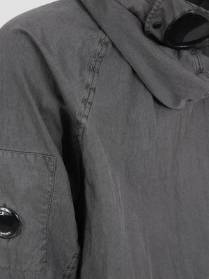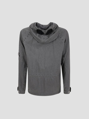 This Goggle Jacket is crafted from Panama-R, a rugged Oxford-weave fabric made from recycled nylon. It features a sophisticated double-hood system: an outer hood with snap buttons and an internal adjustable Goggle hood made from heavy Taylon P taslanized nylon.