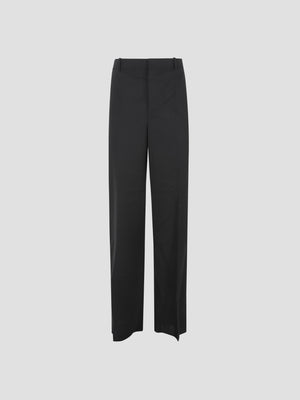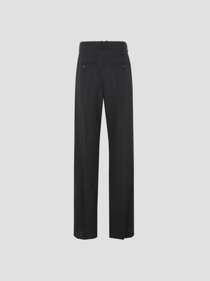 A timeless layer designed to transition seamlessly from day to evening , characterized by a high-waisted design, belt loops, hidden button closure, hook and zip, two slanted pockets in the front and welt pockets in the back. This piece is crafted from 100% wool.