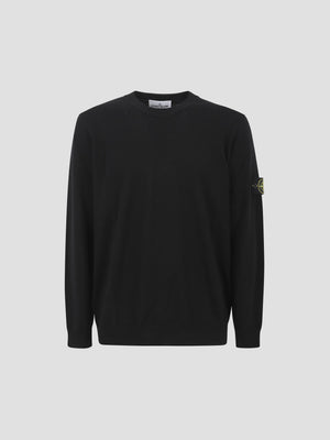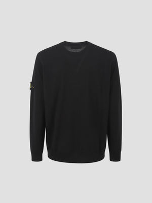 A timeless layer designed to transition seamlessly from day to evening utility influence with a classic fit, eound neckline and long sleeves, with a logo patch on the sleeve. This piece is crafted from 80%wo 20%polyamide for a clean, elegant drape utility influence.
