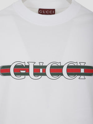 A timeless layer designed with Gucci web print, round neckline, dropped shoulder, short sleeves, rib trim on the collar and regular fit Made from 100% cotton.