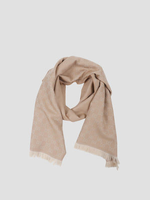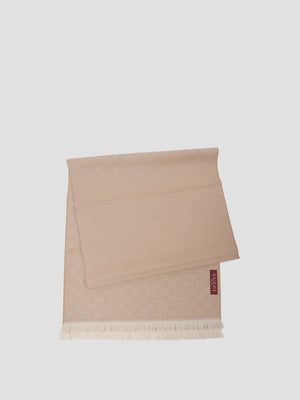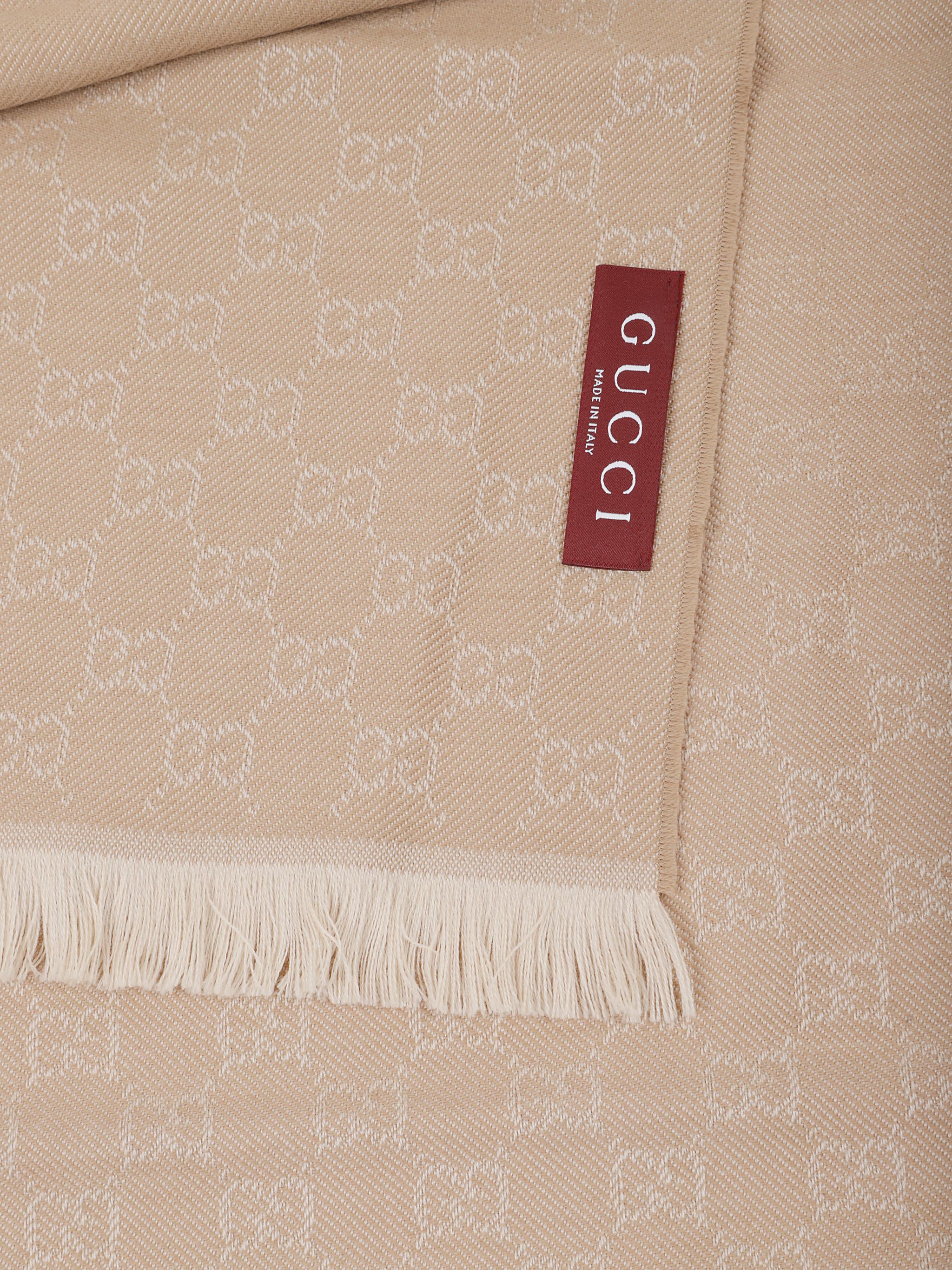 Streamlined seams and subtle detailing create a polished, A timeless layer designed with Beige and ivory GG jacquard wool and fringed finishes. Tailored as a refined piece, this piece is crafted from 100%wool.