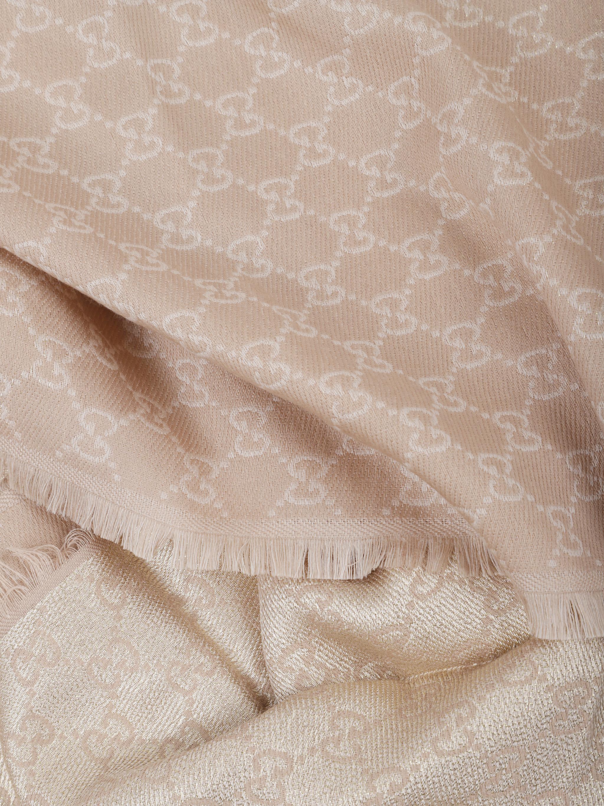 A timeless layer designed to transition seamlessly from day to evening polished metal accents. Tailored as a refined piece with a classic GG monogram. this piece is crafted from 33%wo 28%cotton 20%vi 14%se 5%metallized fiber.