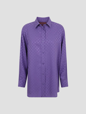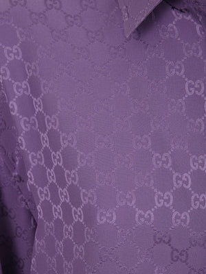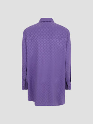 This oversize shirt is crafted from pure purple silk for a fluid and luxurious drape. It is defined by a tonal all-over GG embroidery, a short-pointed collar, and a button closure. Featuring angled cuffs with buttons, a rear yoke, and a slightly longer back.