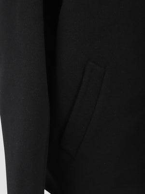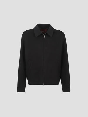 A timeless layer with wool silk felt, classic polo collar, zip closure, dropped shoulders, buttoned cuffs, back elasticated hem and regular boxy fit designed to transition seamlessly from day to evening polished metal accents. Made from 99% wool 1% silk.
