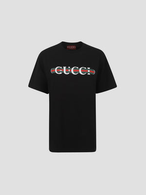A timeless layer designed with Gucci web print, round neckline, dropped shoulder, short sleeves, rib trim on the collar and regular fit Made from 100% cotton.
