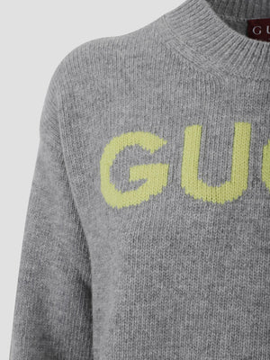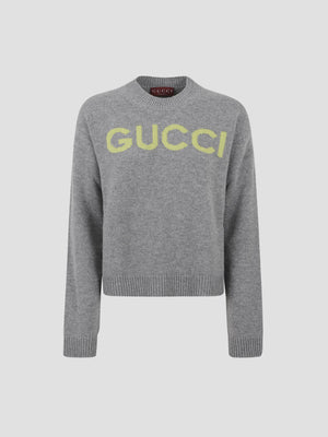 A timeless layer designed with a classic fit, round neck line, and GUCCI logo on the front. Made from 100% wool.