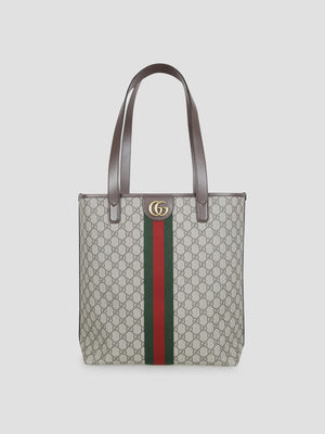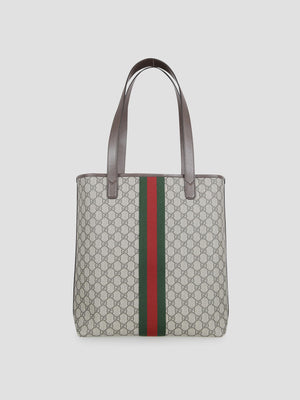 This bag blends the beige and brown GG monogram coated canvas with the green and red web stripe. The design is enriched by dark brown leather trims and polished gold-toned hardware, featuring the emblematic Double G logo. Its spacious interior is finished with a dark green cotton-linen lining.