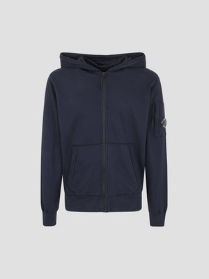 This sweater is a functional midweight layer made from premium diagonal raised fleece. This soft loopback cotton ensures breathability and durability for daily wear. It features a full-zip front, an adjustable hood, and secure side pockets, finished with the iconic Lens detail on the sleeve.