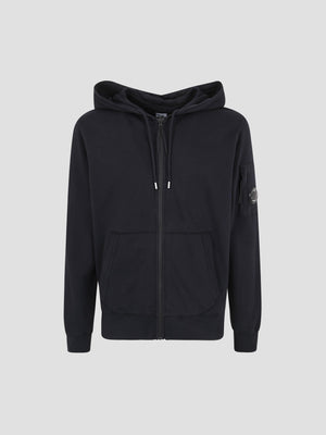 This sweater is a functional midweight layer made from premium diagonal raised fleece. This soft loopback cotton ensures breathability and durability for daily wear. It features a full-zip front, an adjustable hood, and secure side pockets, finished with the iconic Lens detail on the sleeve.